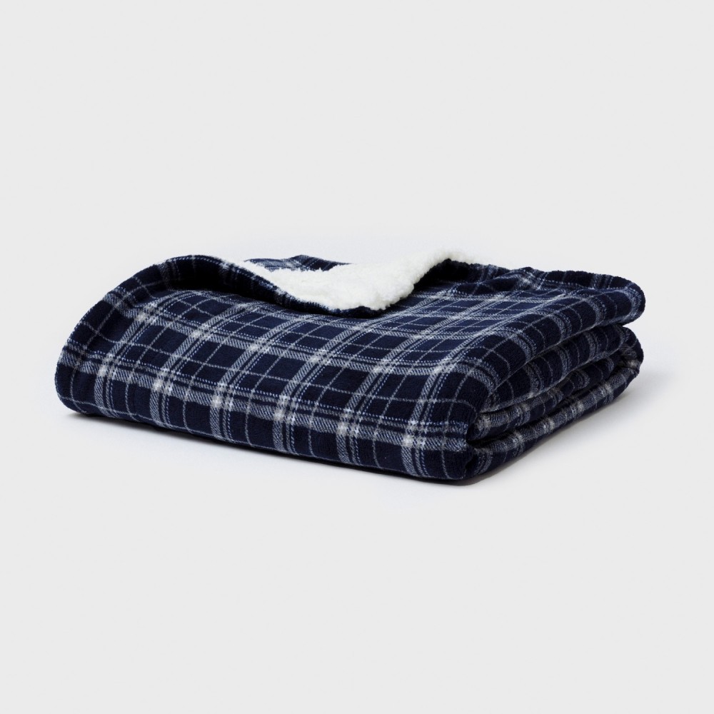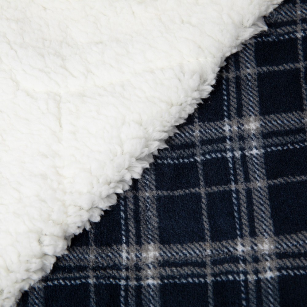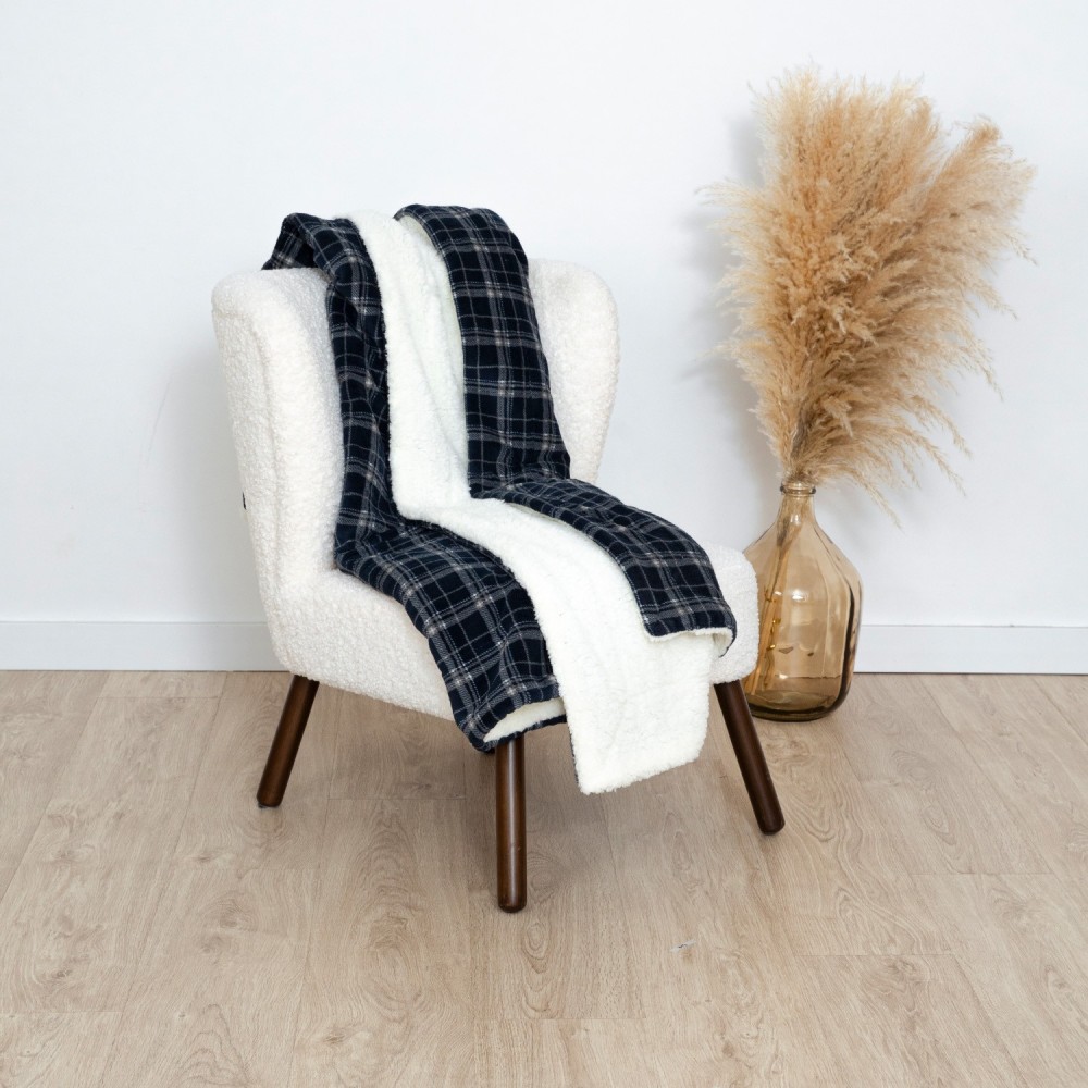 Coperta sherpa modello Cuadro Brais blu marino, extra morbida 100% poliestere.