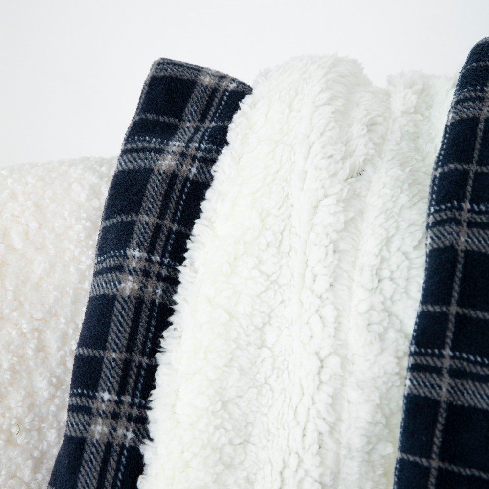 Coperte per l'inverno con morbida texture di coralina nella parte superiore e sherpa nella parte inferiore, il complemento ideale per godersi l'inverno in modo comodo e confortevole.