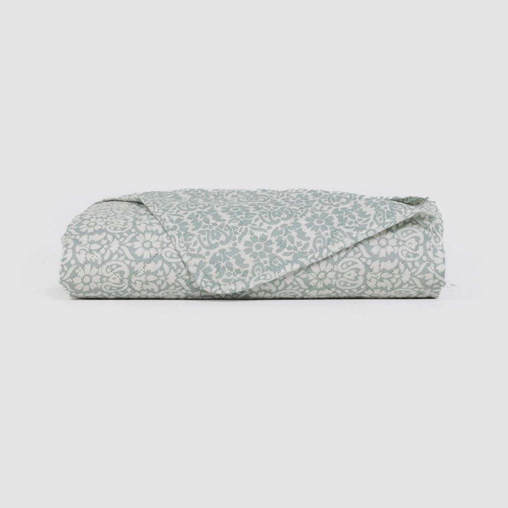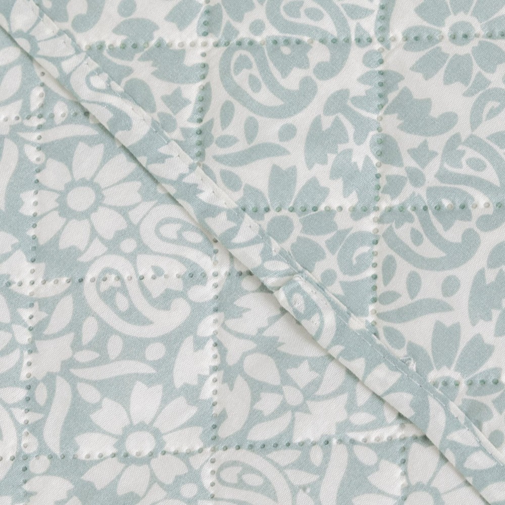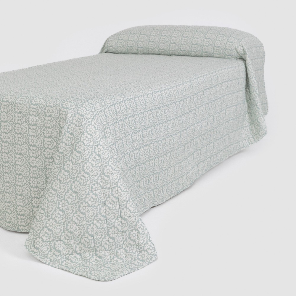 Presenta una stampa di fiori bianchi su sfondo verde, il retro presenta lo stesso disegno ma con i colori invertiti.