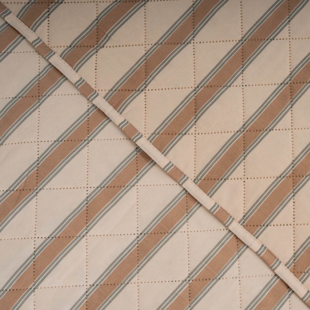 Presenta una stampa classica a righe nei toni sabbia e verde su fondo bianco; il lato posteriore presenta lo stesso disegno.