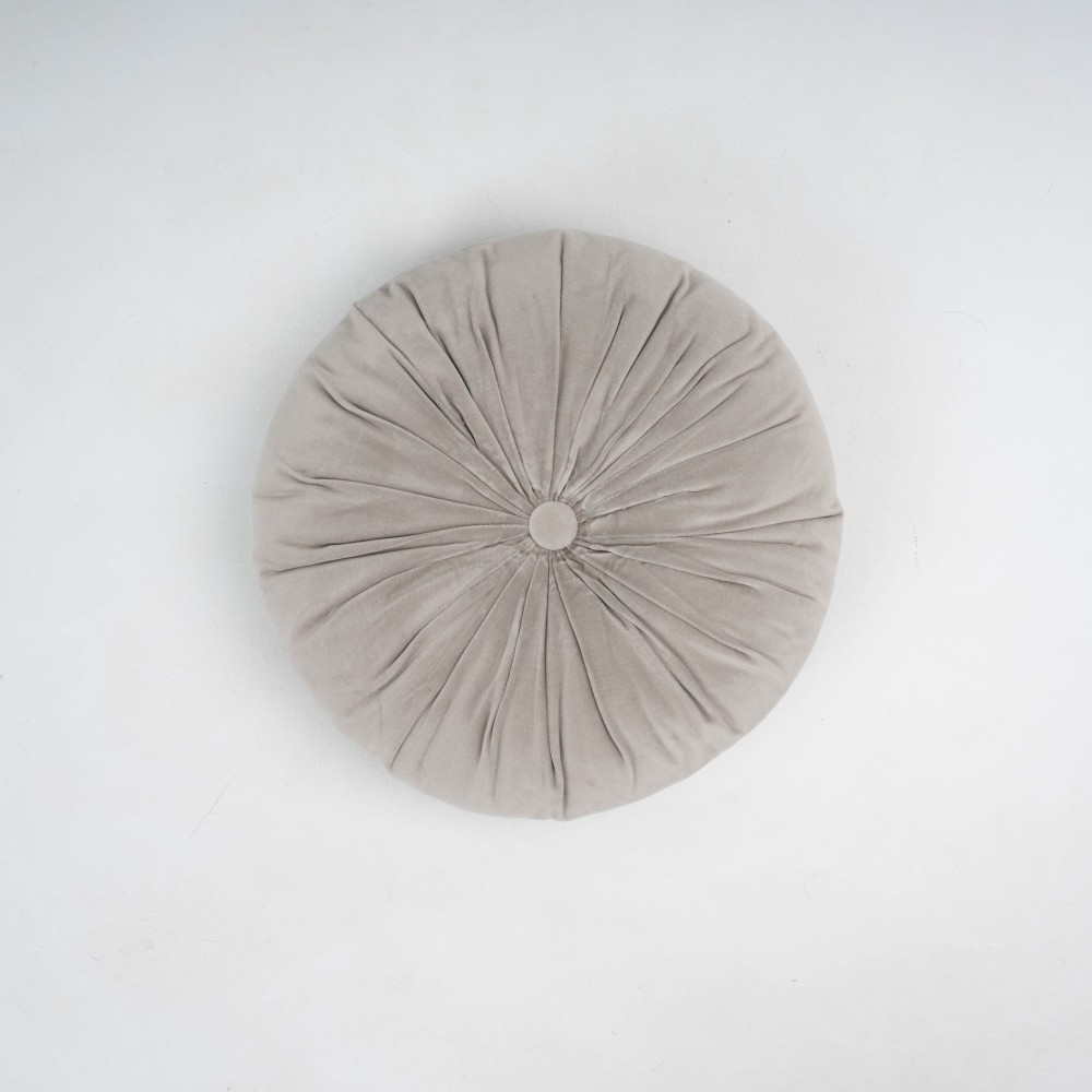 Il suo design è rotondo, realizzato in velluto a tinta unita, con un bottone centrale che gli conferisce un tocco più originale.