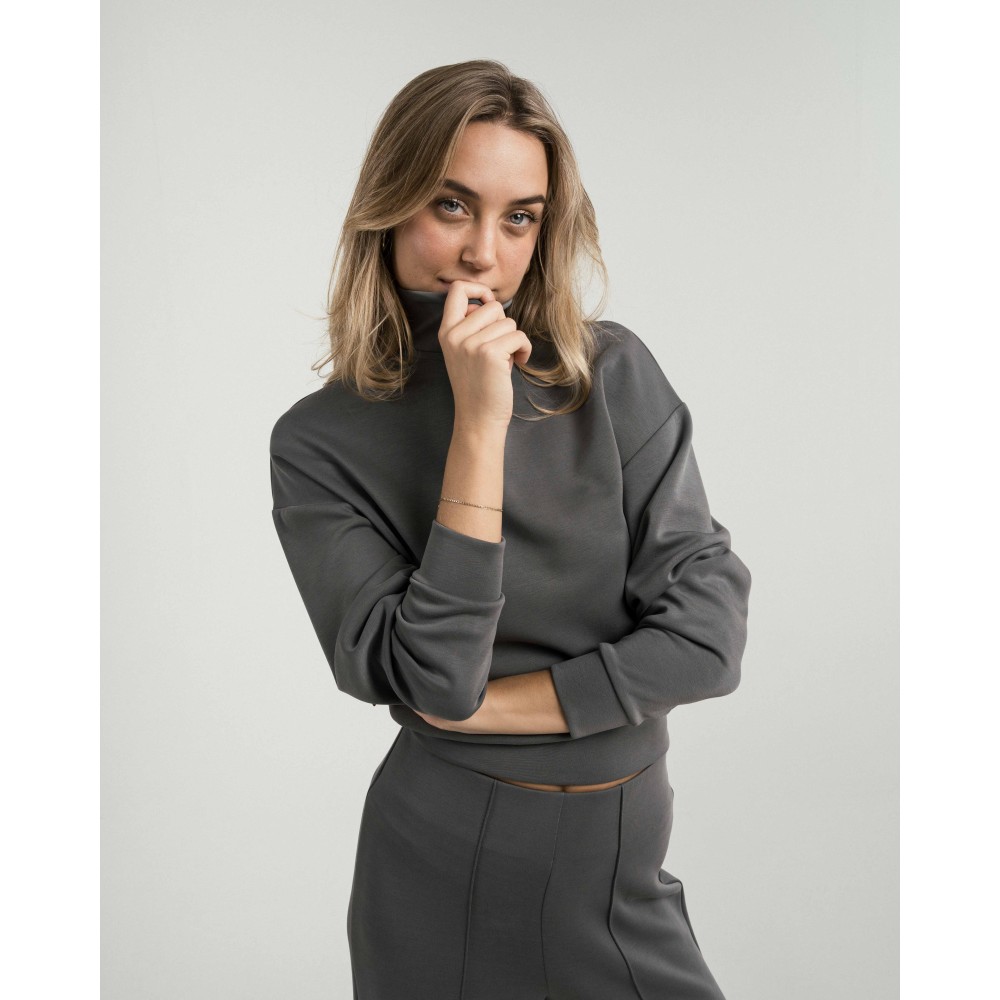 Felpa a maniche lunghe con spalla scesa, collo alto e finiture elastiche in vita e ai polsini che garantiscono il massimo comfort.