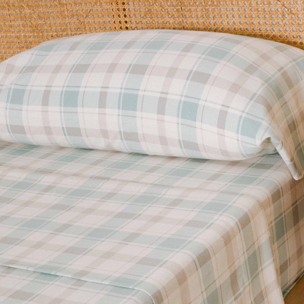 Set di lenzuola in flanella modello Cuadro Noric verde.