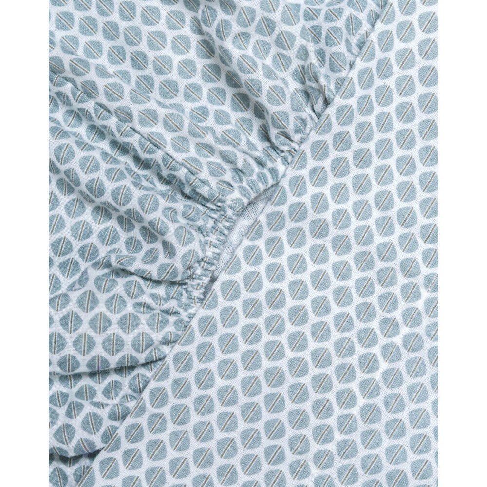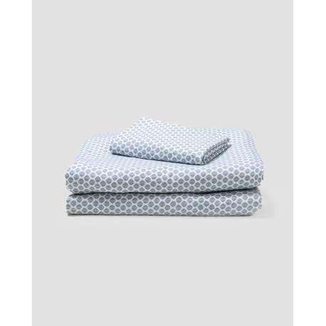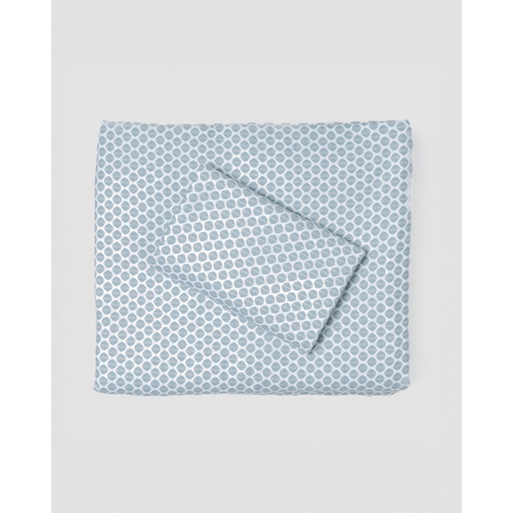 Lenzuola e federe di colore bianco con stampa di piccole figure in tonalità di blu, in morbido tessuto di flanella, ideali per linverno grazie alle loro proprietà termiche.