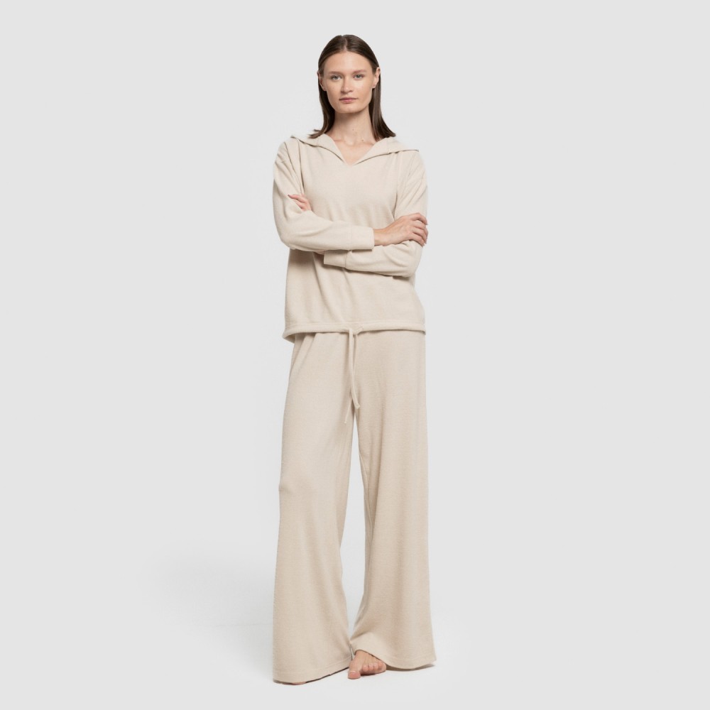 Pantalone lungo ampio da donna in angorina tinta unita.