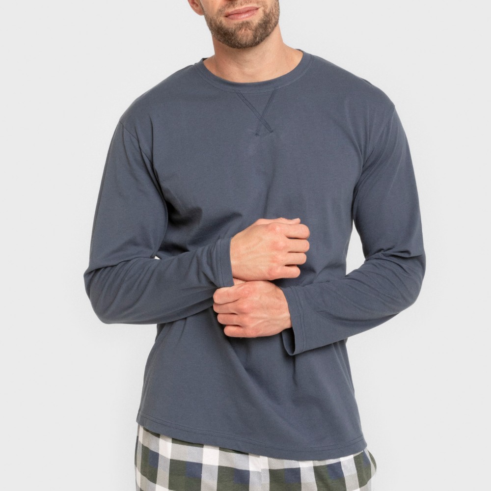 Pigiama da uomo composto da maglietta a maniche lunghe e pantaloni lunghi.