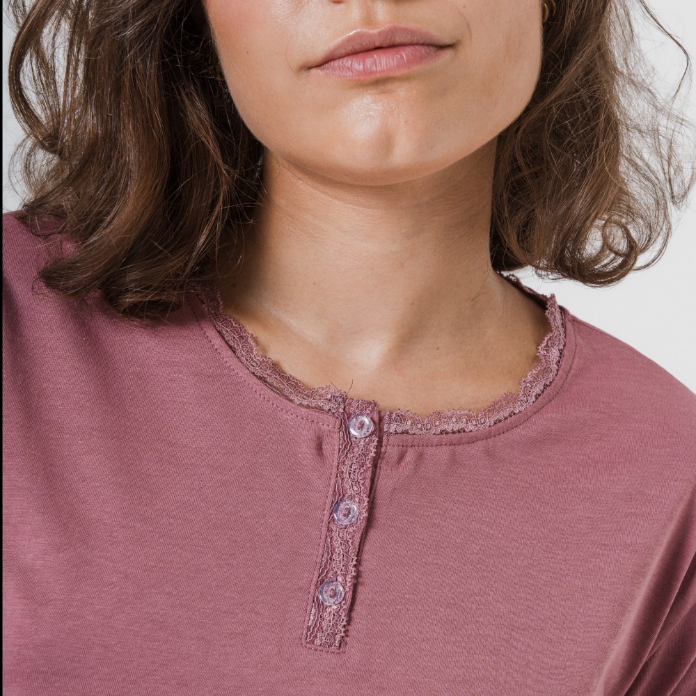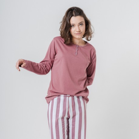 Pigiama lungo da donna modello Raya Elvis malva rosa.