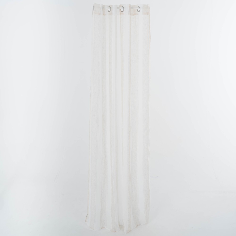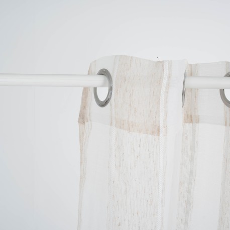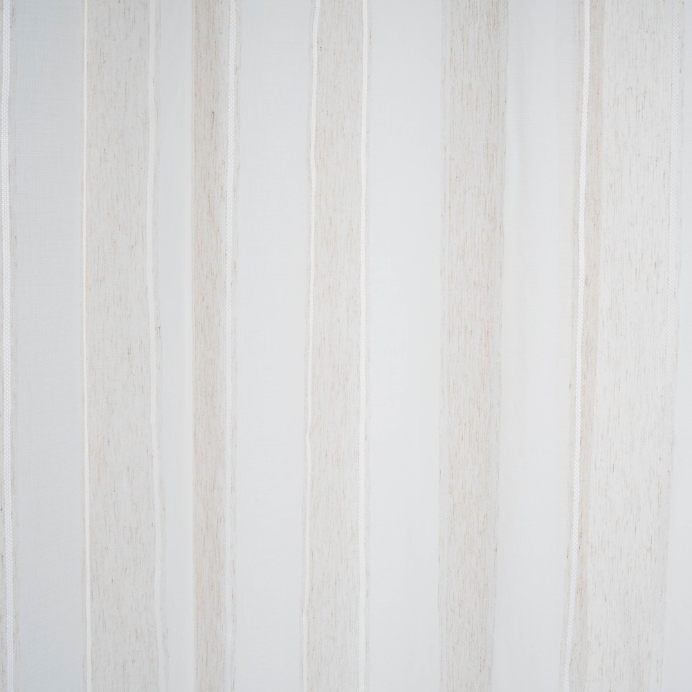 Tenda semitrasparente color sabbia con righe verticali bianche, un pezzo unico che porterà colore ed eleganza alla tua casa.