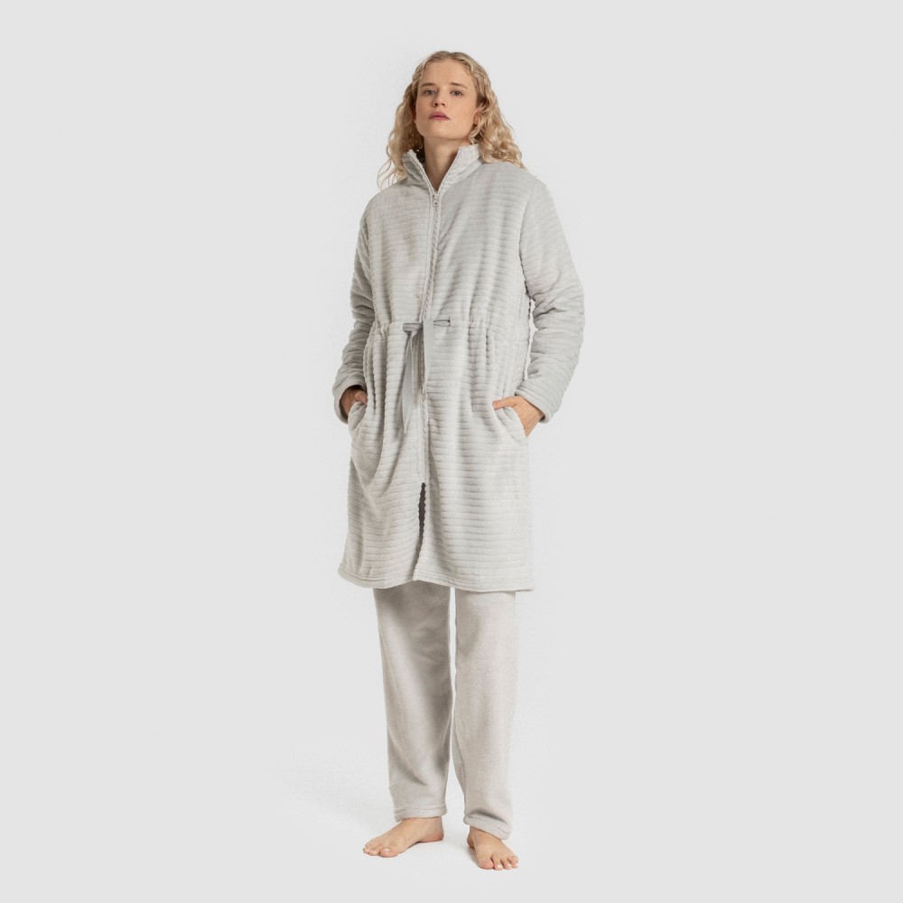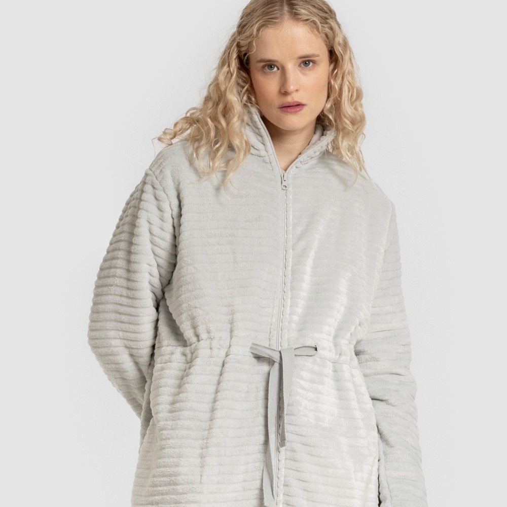 Vestaglia velluto Raya con cerniera in tinta unita.